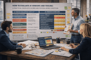 This guide breaks down how to evaluate AI vendors and tooling using a practical checklist and scorecard, grounded in governance, architecture, risk, and long-term viability. Not theory. Not hype. Just the questions that actually matter once the pilot ends and the tool has to perform.